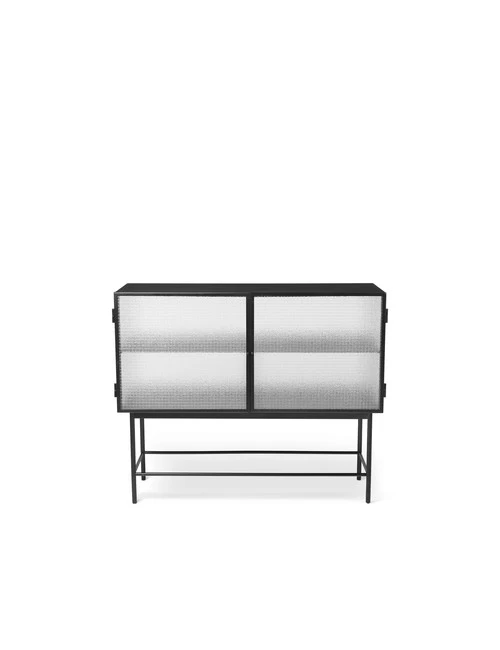 Perfect for concealing clutter in a busy hallway or as an elegant storage solution for a home office, bathroom or dining room, the sleek metal frame of our Haze Sideboard is coated with classic black that blends seamlessly into any interior style. Wired glass walls and doors continue the sophisticated expression, blurring the cupboard’s contents from prying eyes.