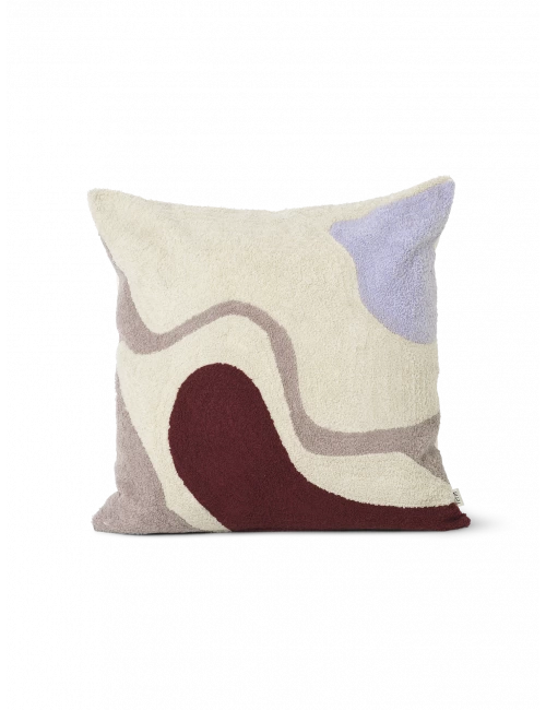 With an abstract view of our planet from above, this line of soft cotton cushions features an artful embroidered pattern on the front with a solid-colour backside. The cushion come in three different colourways, all kept in calm hues with a single bright detail. In this series, you will also find matching tapestry blankets.
