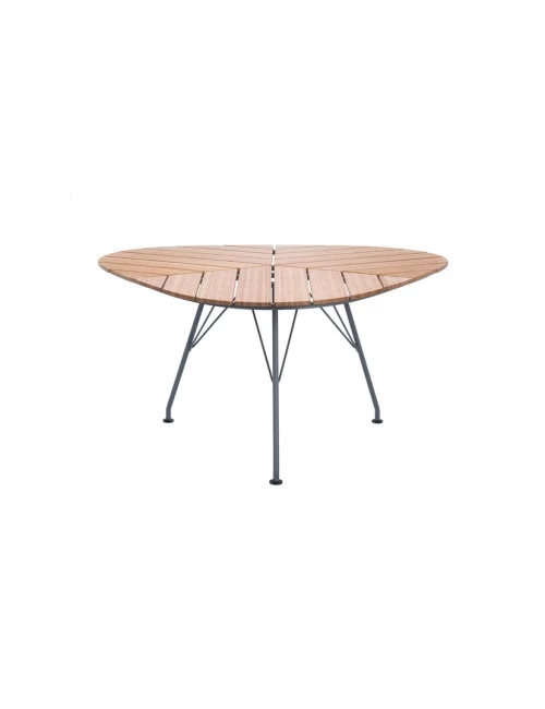 LEAF – A beautiful garden table that really looks like a leaf. The triangular form and the table construction which is drawn in under the table makes it possible to seat 9 people around the table. The bamboo table top is pre-oiled.