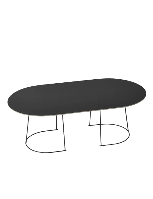 The Airy Medium coffee table 120×65 by Muuto has a length of 120 centimeters, a width of 65 centimeters and a height of 41.2 centimeters. The coffee table has a table top made of plywood with a nano-laminate finish and is supported by a frame made of powder-coated steel.