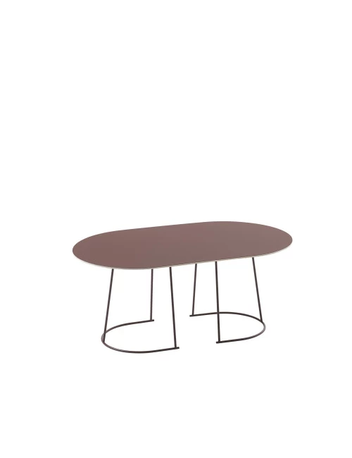 The Airy Medium coffee table 88×51 by Muuto has a length of 88 centimeters, a width of 51 centimeters and a height of 37.2 centimeters. The coffee table has a table top made of plywood with a nano-laminate finish and is supported by a frame made of powder-coated steel.