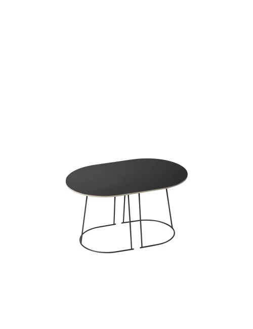 The Airy Medium coffee table 68×44 by Muuto has a length of 68 centimeters, a width of 44 centimeters and a height of 37.2 centimeters. The coffee table has a table top made of plywood with a nano-laminate finish and is supported by a frame made of powder-coated steel.