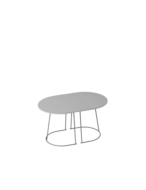 The Airy Medium coffee table 68×44 by Muuto has a length of 68 centimeters, a width of 44 centimeters and a height of 37.2 centimeters. The coffee table has a table top made of plywood with a nano-laminate finish and is supported by a frame made of powder-coated steel.