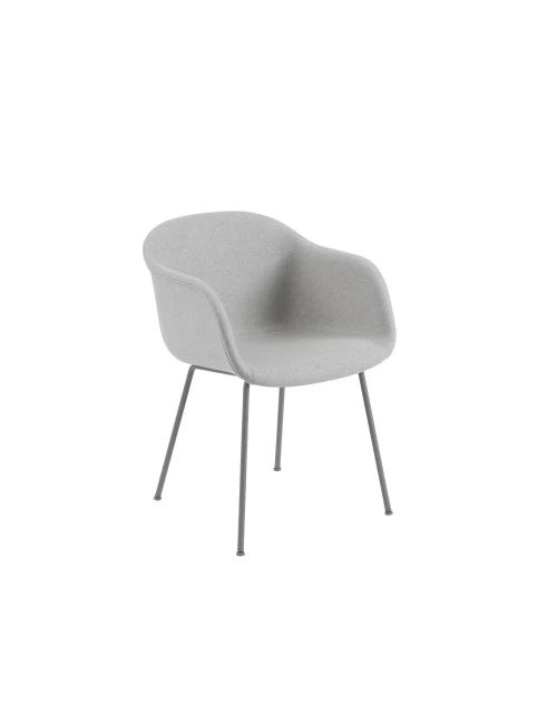 The Fiber Armchair is made from an innovative wood fiber composite with up to 25% pine wood fibers for a tactile expression and matte touch, joined by the Scandinavian touch of a tube base. The fibers make for a unique texture when viewed up-close yet become invisible to the eye when viewed from afar, paired with an embracing yet minimal shape.