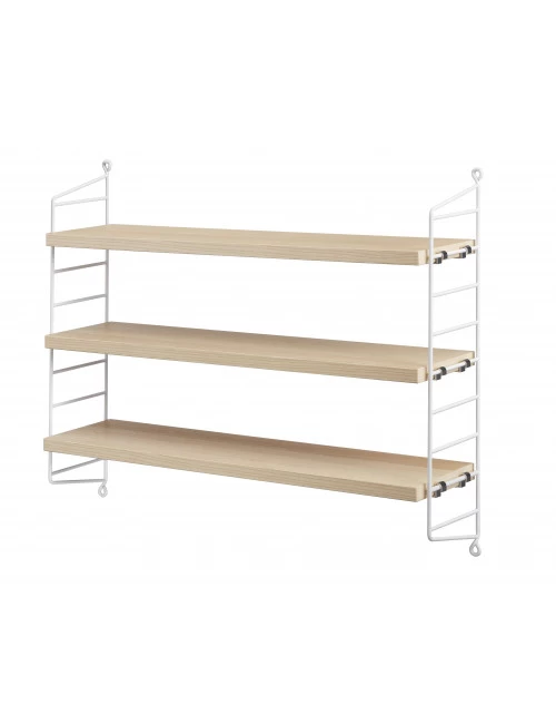 String Pocket is a compact and elegant shelf for books, collectables and other small items. Launched in 2005 by the Swedish manufacturer String, String Pocket is part of the popular collection designed by Nils Strinning in 1949. The minimalist design consists of three shelves and two ladder-like side panels that can also be combined into larger units both vertically and horizontally.