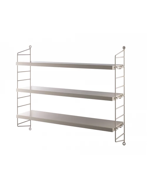 String Pocket is a compact and elegant shelf for books, collectables and other small items. Launched in 2005 by the Swedish manufacturer String, String Pocket is part of the popular collection designed by Nils Strinning in 1949. The minimalist design consists of three shelves and two ladder-like side panels that can also be combined into larger units both vertically and horizontally.