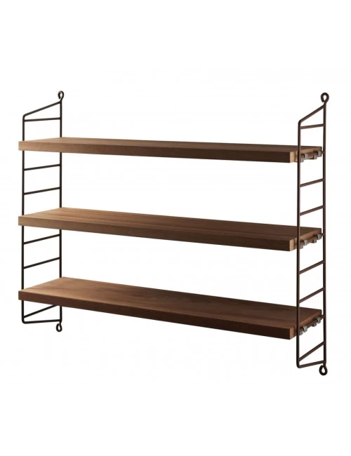 String Pocket is a compact and elegant shelf for books, collectables and other small items. Launched in 2005 by the Swedish manufacturer String, String Pocket is part of the popular collection designed by Nils Strinning in 1949. The minimalist design consists of three shelves and two ladder-like side panels that can also be combined into larger units both vertically and horizontally.