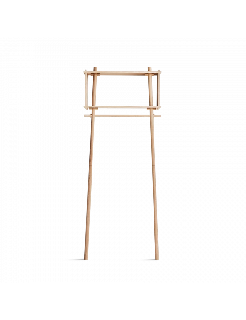 Töjbox is a simplistic and functional wardrobe made of oak. The design is ideal for the entrance, bedroom or walk-in closet. Use the clothes rack to hang your shirts and jackets and store your everyday belongings or favourite decorations in the box, while the angled legs leave space on the floor for shoes and bags.